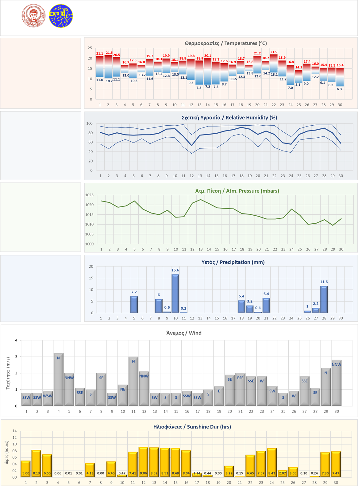 | Μέση Ατμ. Πίεση: | 1016.2 | |||||||||||||||||||||
